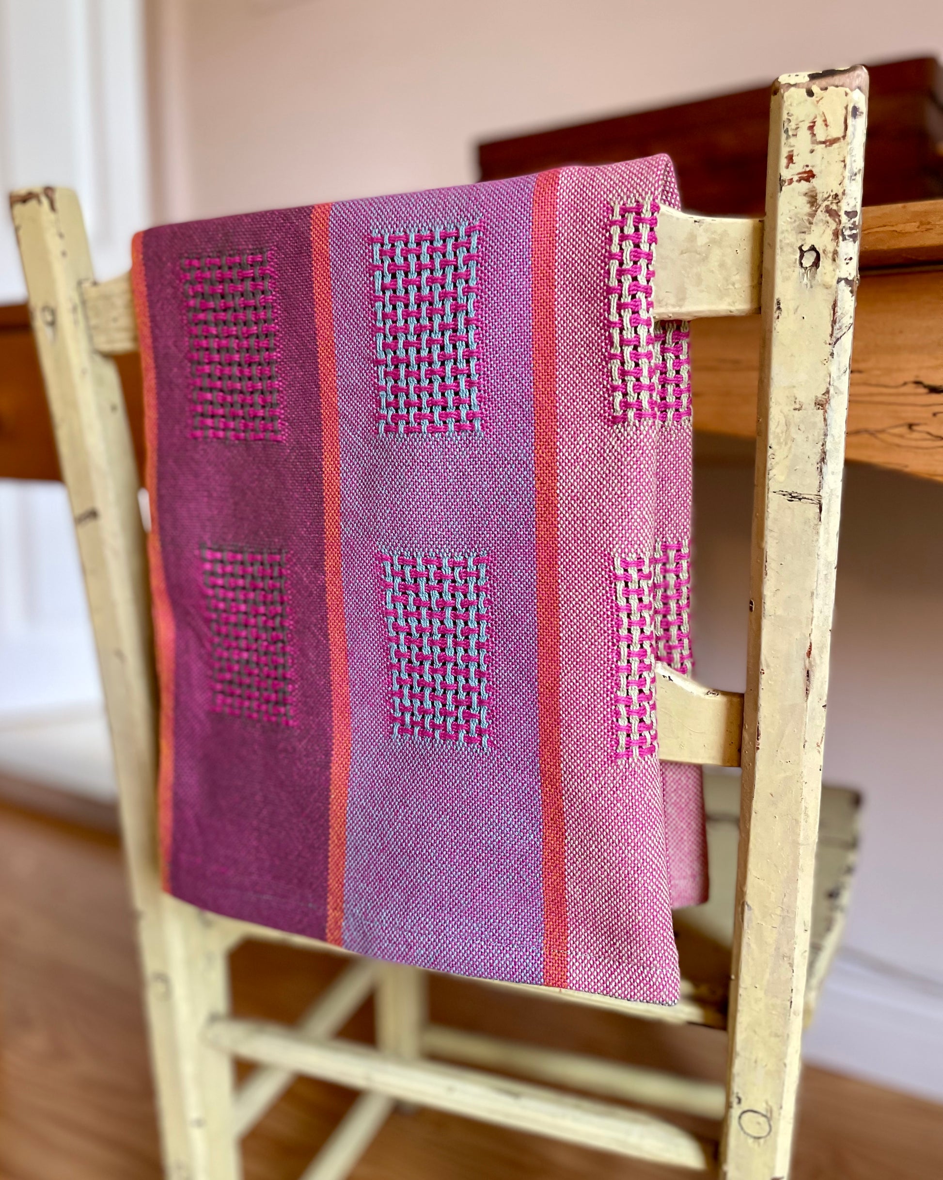 - One of a kind, handwoven on a Leclerc Fanny II counterbalance floor loom. Each piece has slight variations due to its handmade nature.